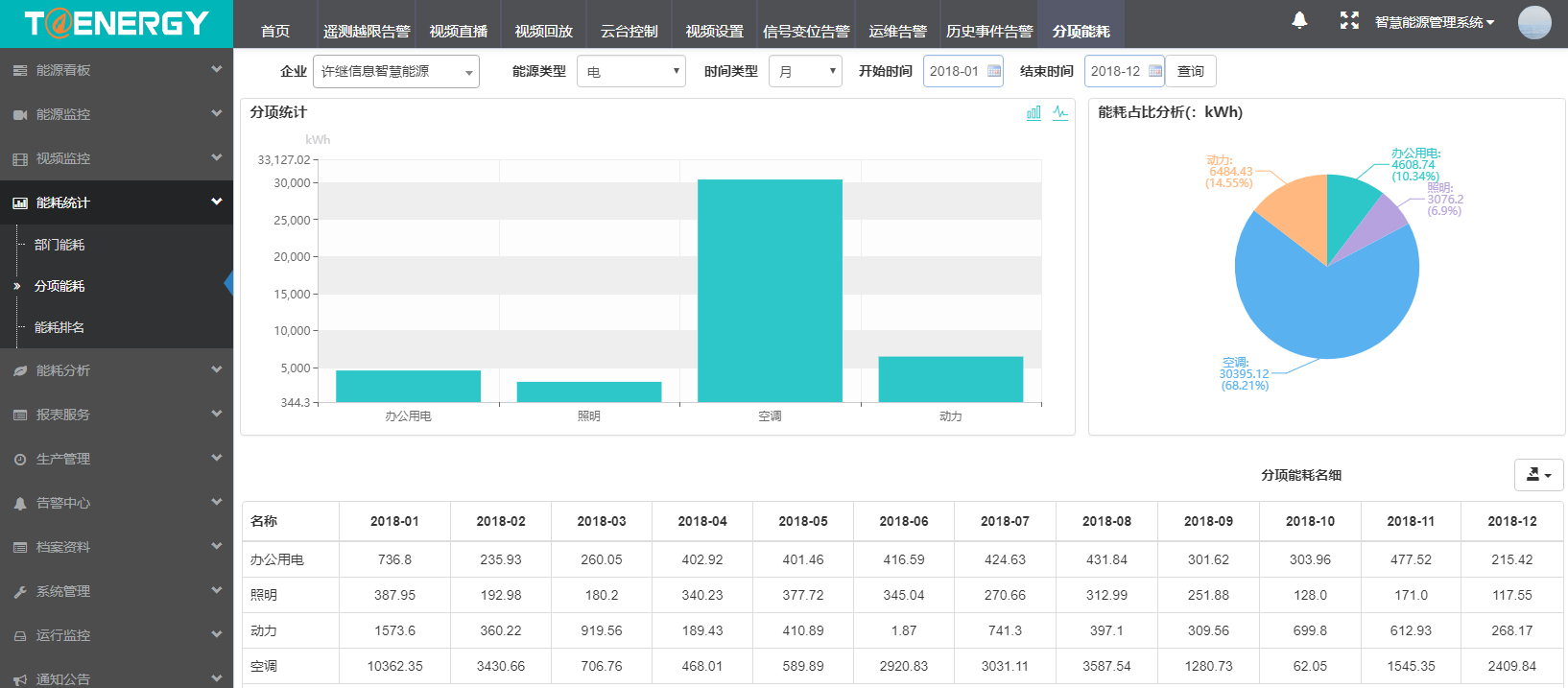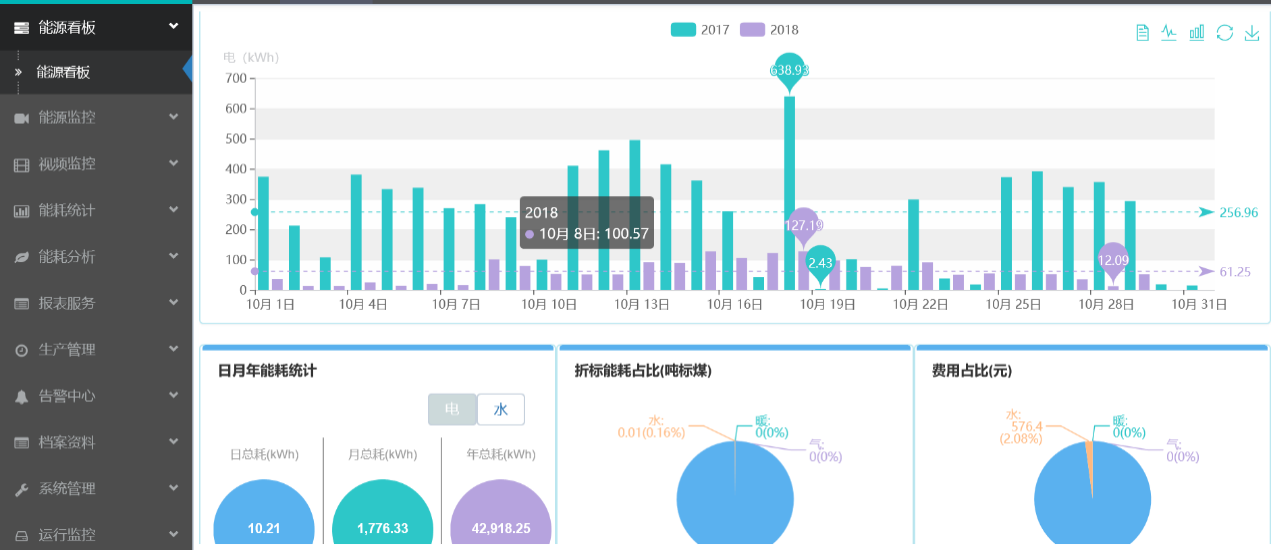 2.对各能耗设备的能耗数据进行统计分析与展现;并对用能趋势进行分析。
