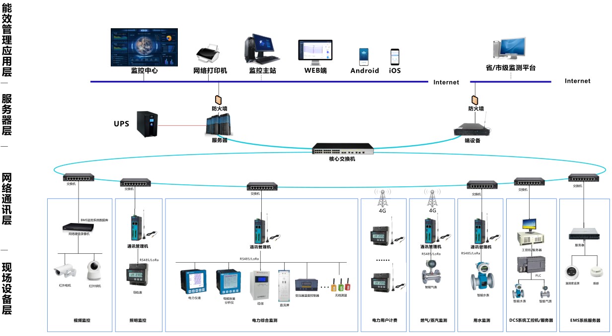 智慧能源管理系统的是包含对水、电、气冷热能源使用状况管理,及现场压力、温湿度、视觉影像、生物识别等参数实行集中监测、管理和分散控制。以区域数据为基础,结合“互联网+大数据“的有效利用,自由组合成个能耗单元”,通过