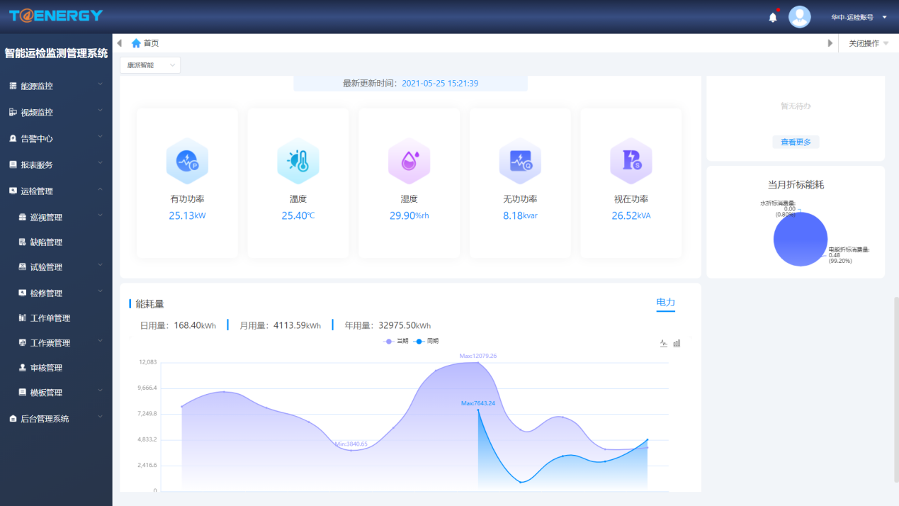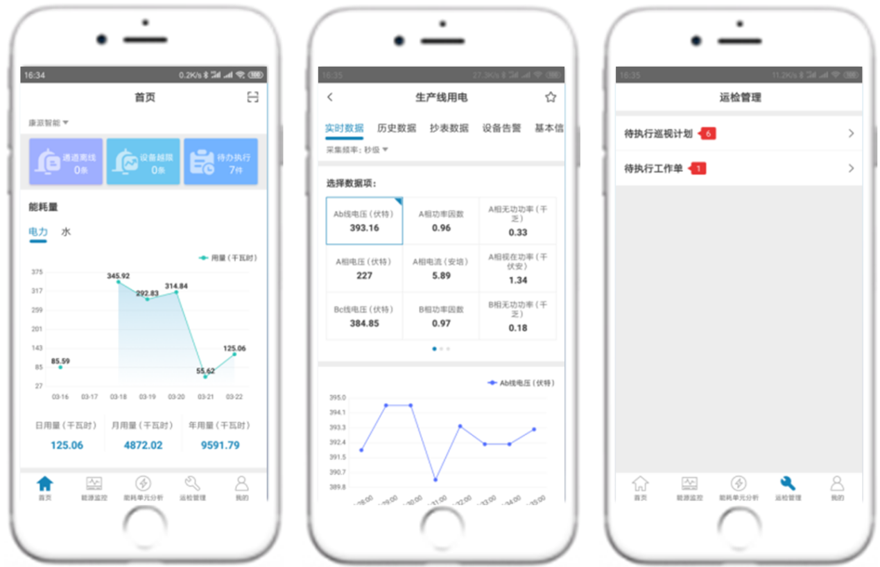 运行设备数据实时查看、能源数据管理、历史数据统计、数据对比;