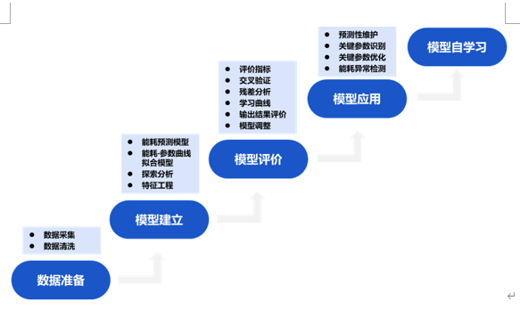 AI的核心是算法和模型的建立,ug环球视讯的能耗预测模型是按照麦肯锡六步法思路进行创建,且已在多个项目有实际应用,并均已获得良好的评价,ug环球视讯能耗预测模型建立过程主要步骤如下: