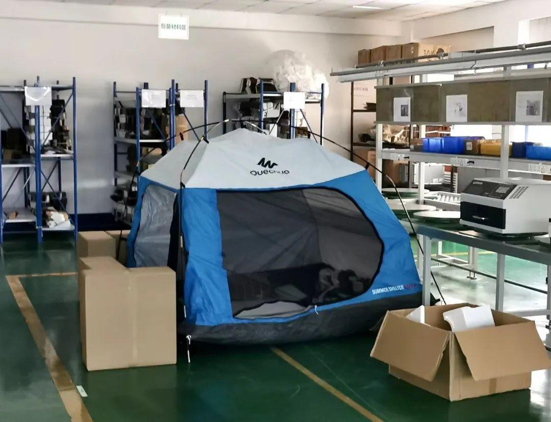 疫情突发,值班人员迅速打包日常起居用品与换洗衣物驻厂办公,想尽办法利用、腾挪有限空间,搭建室内帐篷,布置床铺被褥。