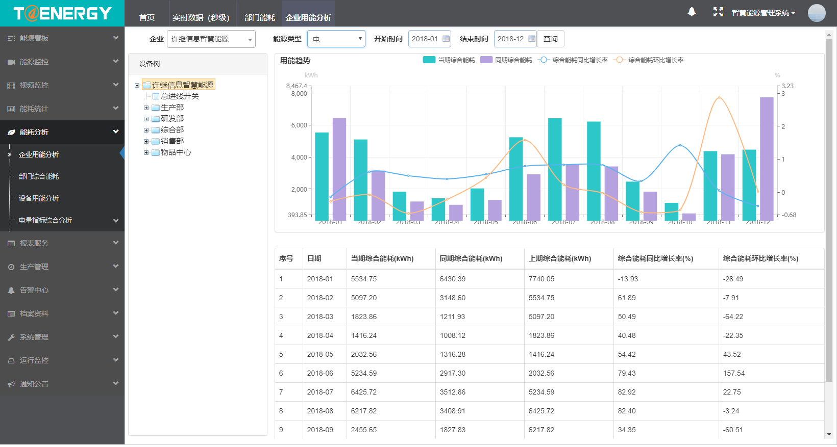 另外用户通过更换和改进设备,能源管理系统通过分析、对比改造前后的能耗情况,对节能效果进行验证。