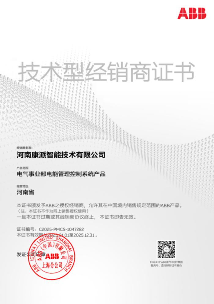 ABB技术型经销商证书