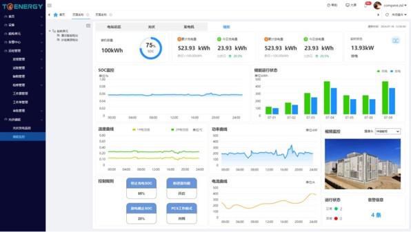 2.储能监视:提供了储能整体运行情况信息,包括储能站充放电量、储能站运行状态、故障情况等