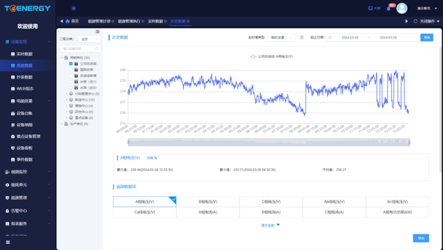 实时采集各种能源形式的使用数据以及设备的运行状态数据,并进行实时监控和预警;