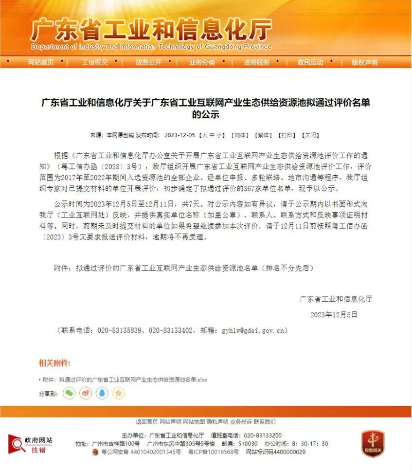 近日,广东省工业和信息化厅公示了《2023年广东省工业互联网产业生态供给资源池入池评审名单》,ug环球视讯成功入选,成为广东省工业互联网产业生态供给资源池企业。