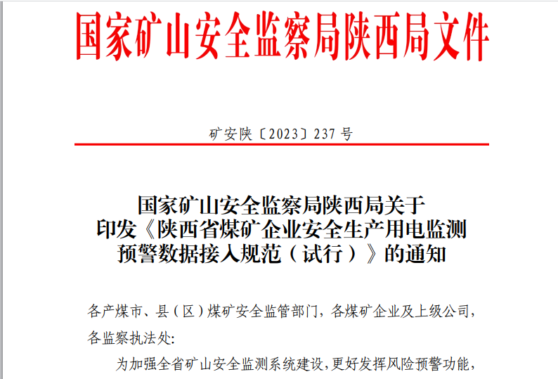 陕西省煤矿企业安全生产用电监测预警数据接入通知