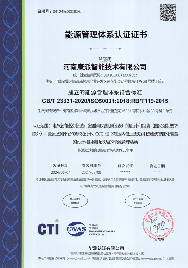 能源管理体系认证证书